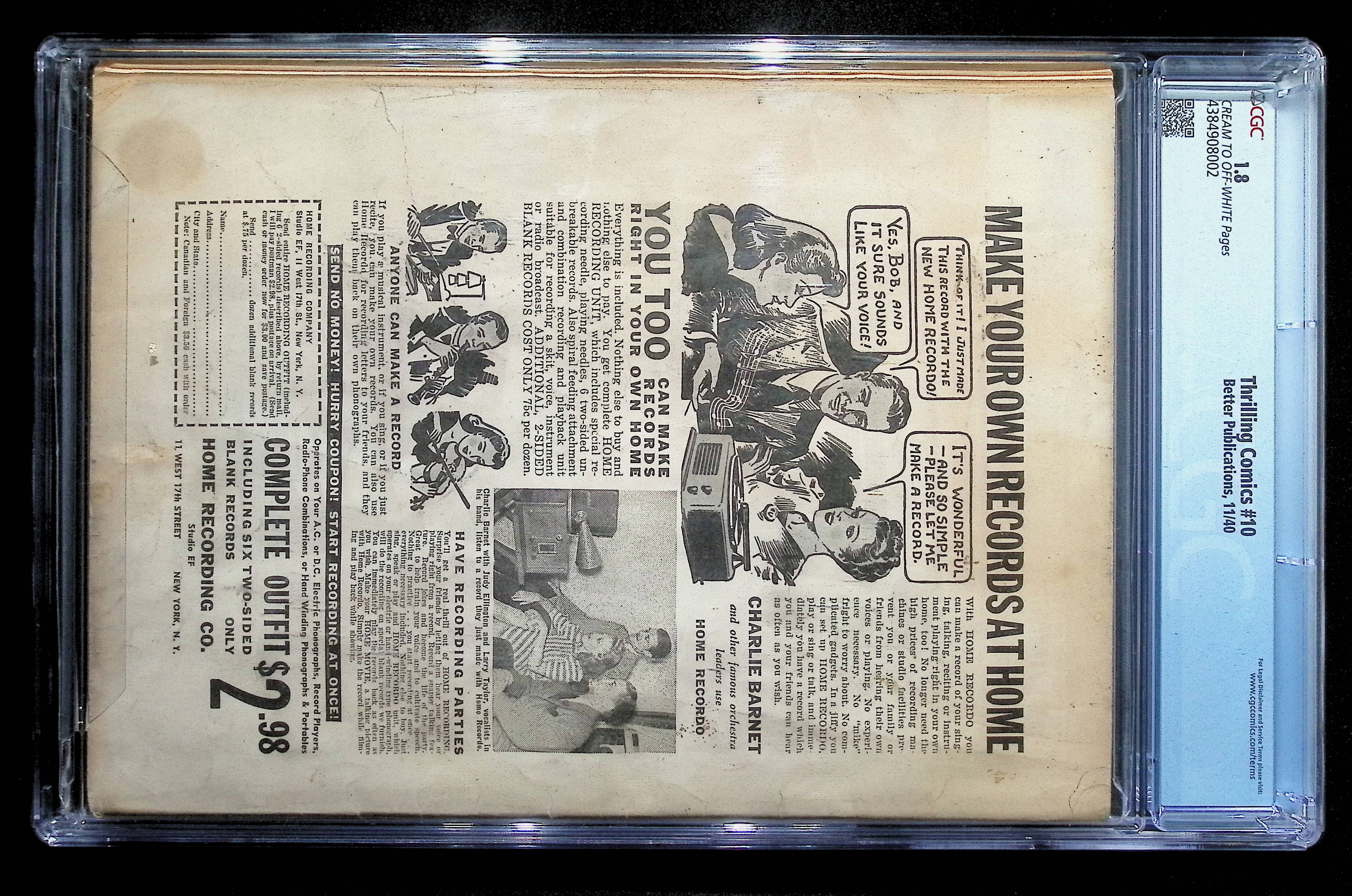 4384908002 Thrilling Comics (1940), No. 10, Better Publ/Nedor/Standard Comics CGC 1.8 CROW