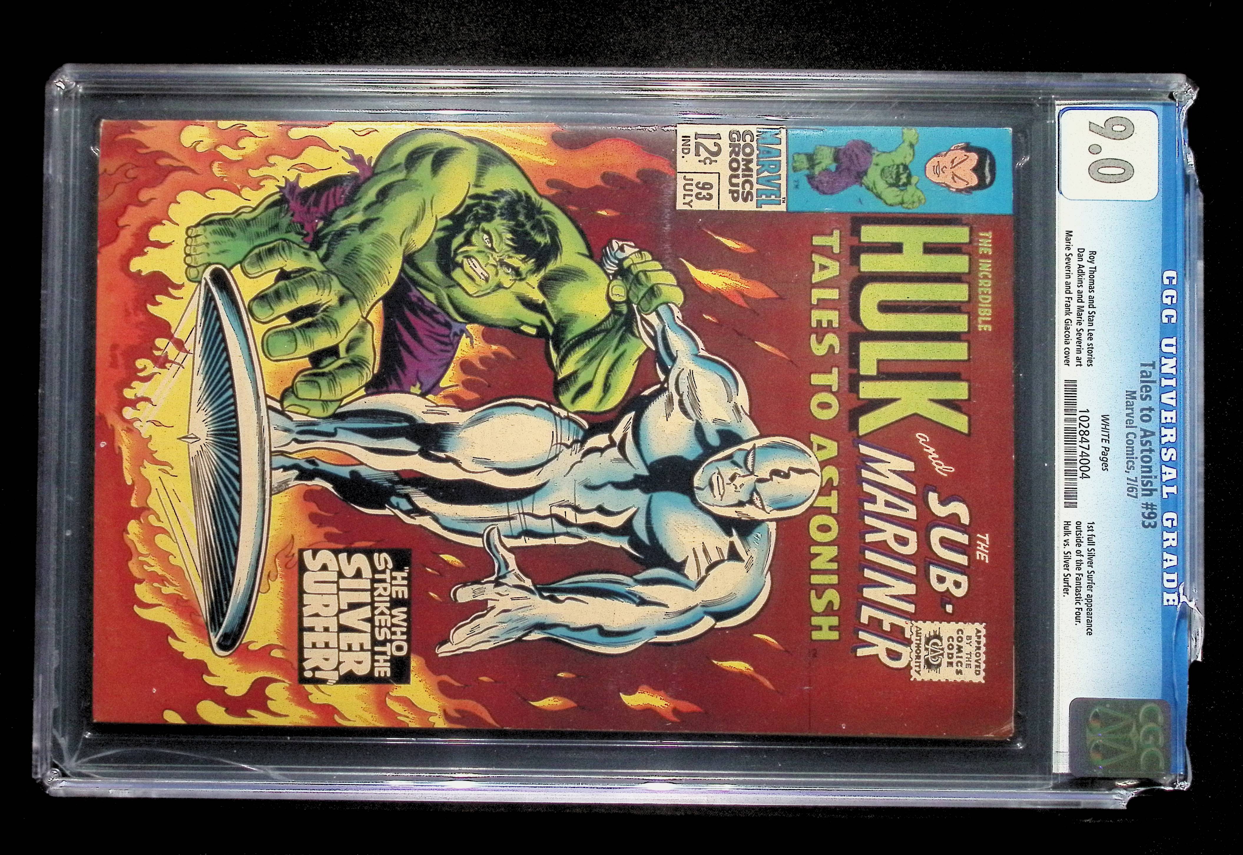 Major Cracks with pieces missing on Top left and right of slab. Crack on the bottom right corner. There is NO VISIBLE damage to the comic due to any damages done to the slab.